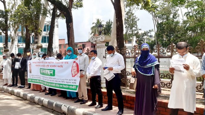 ভোলায় শিক্ষানবিশ আইনজীবীদের মানববন্ধন